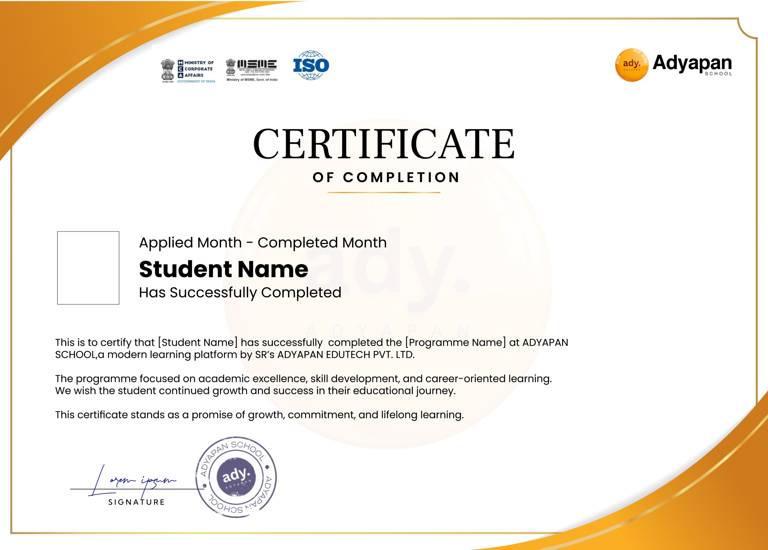 This certificate is awarded to interns in recognition of their successful completion of the Career Boost Program at ADYAPANSCHOOL. During their tenure, interns contribute significantly to specific projects and gain practical exposure.